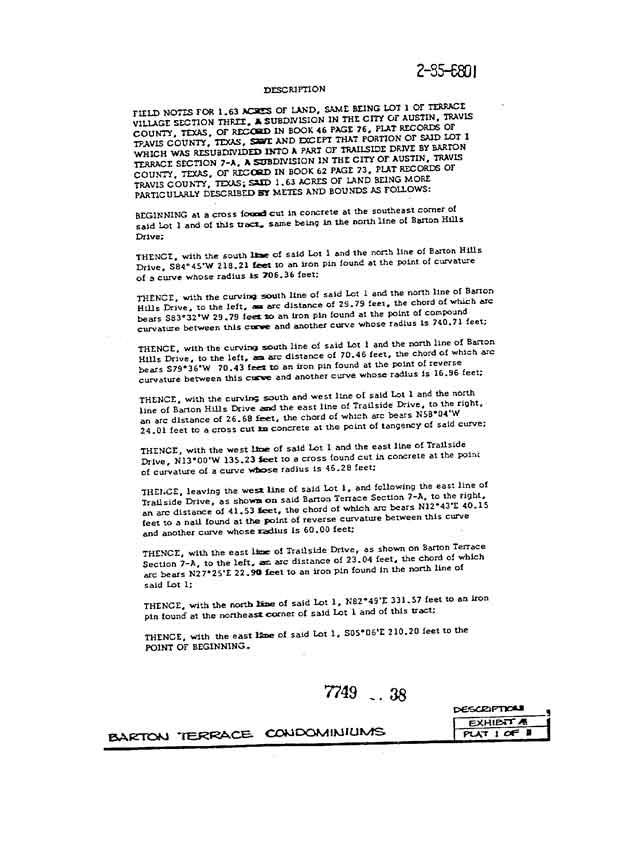 Exhibit A - Metes and Bounds Description of Property (1 page)